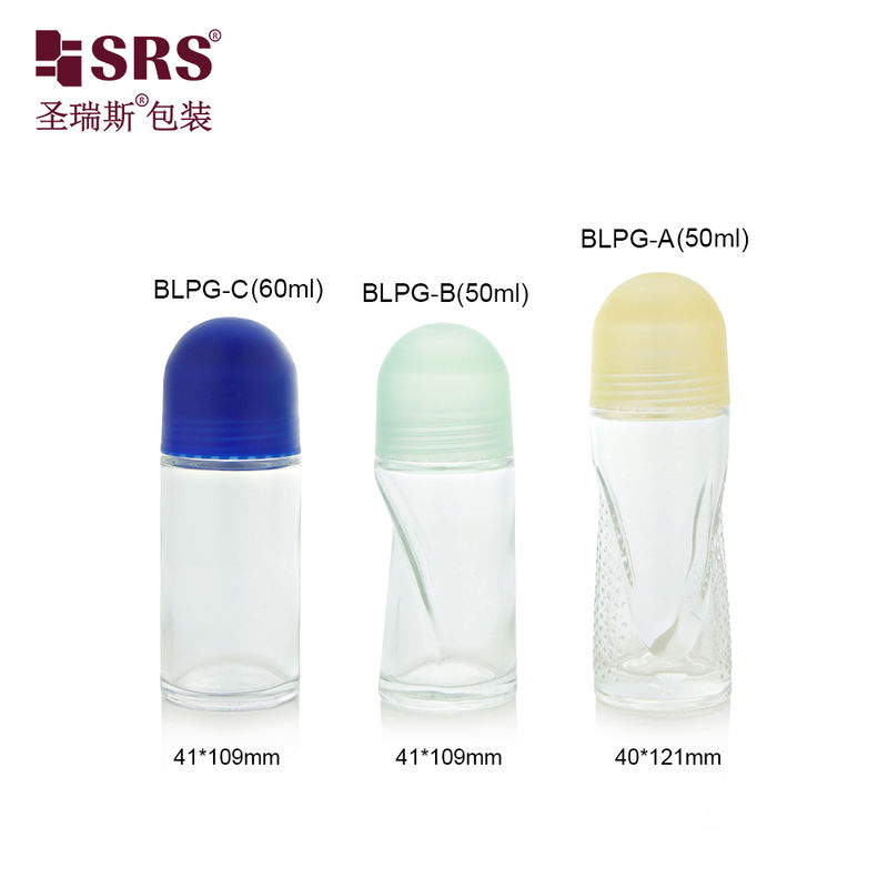 BLPG 50ml 60ml Forma unica Vetro vuoto a rotolo sulla bottiglia per deodorante corpo Gel antitraspirante confezionamento